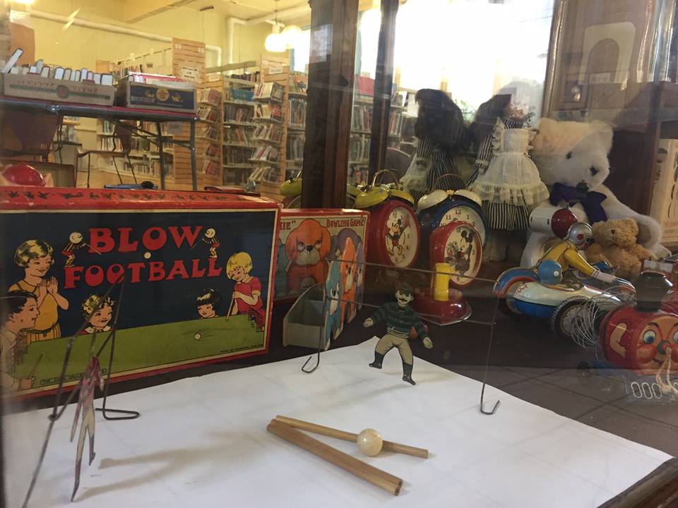 A collection of vintage toys have been donated and are currently on display in our Heritage Cabinet at The Millbrook Public Library.