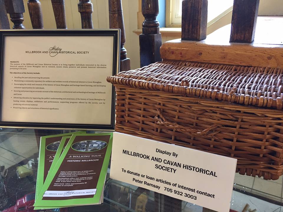 The Millbrook Public Library currently hosts our “Heritage Cabinet”.
